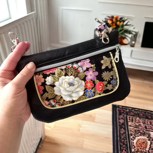 Les portemonnaies garderont les espèces ou les cartes de crédit. Bi-matière, avant en tissu japonais et arrière en suédine ou velours.