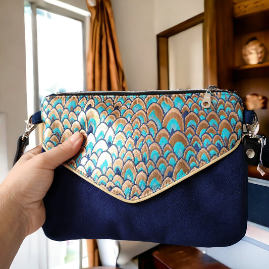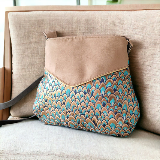 Sac Poire jacquard or turquoise écru