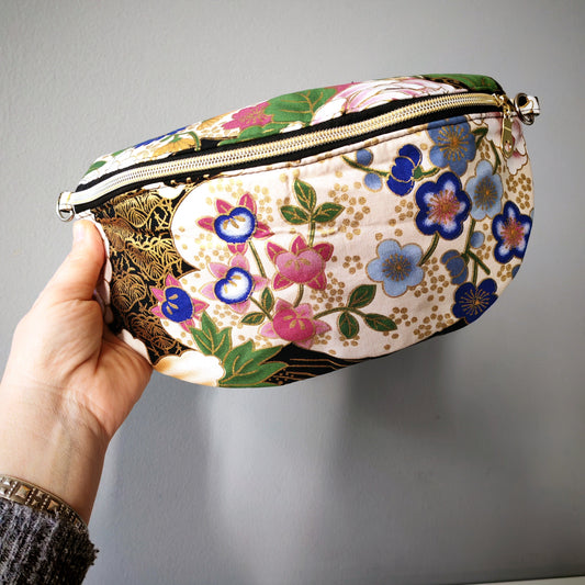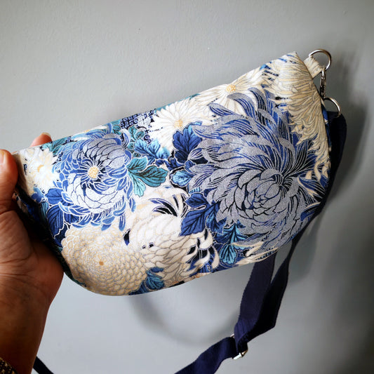 Banane bleu blanc fleurs argent