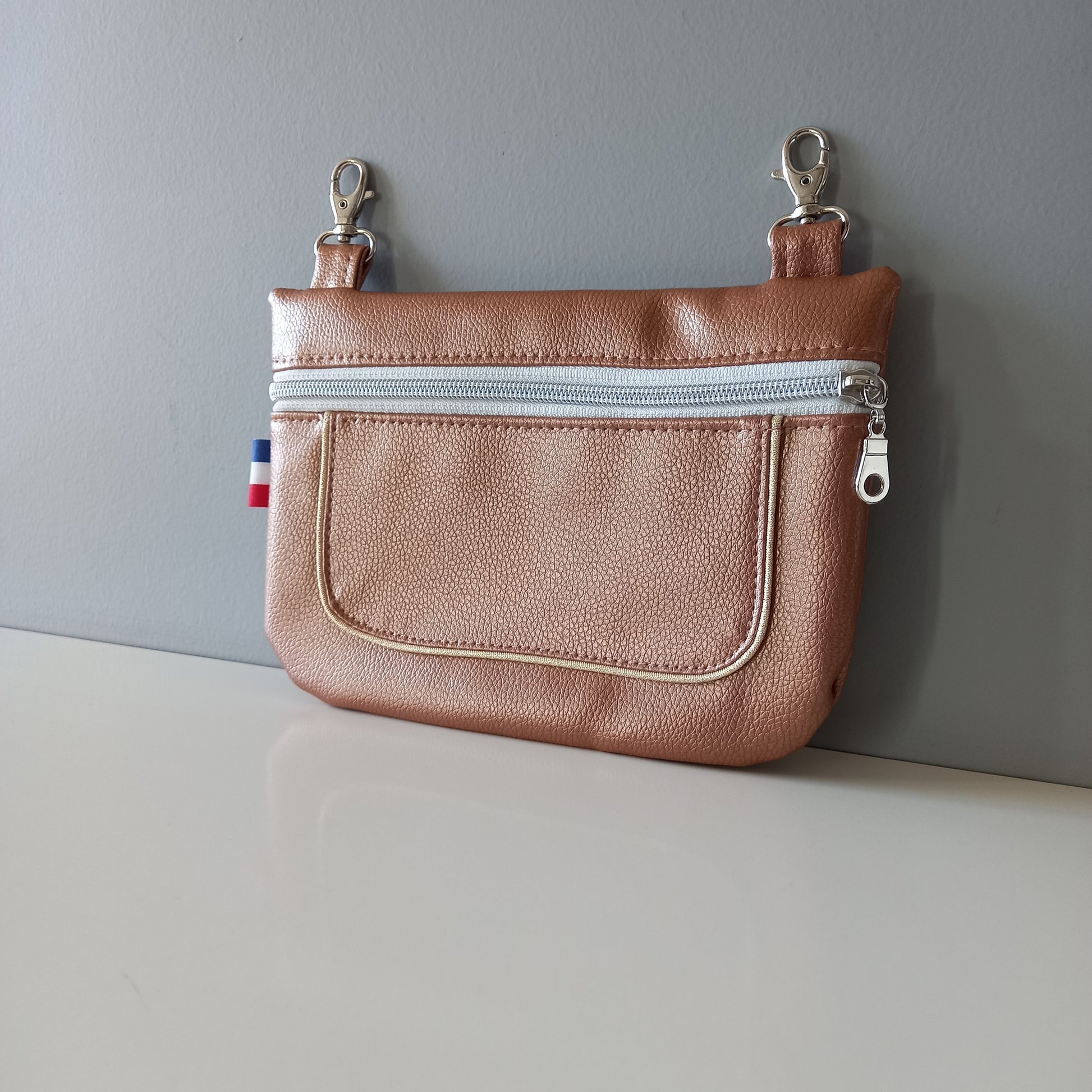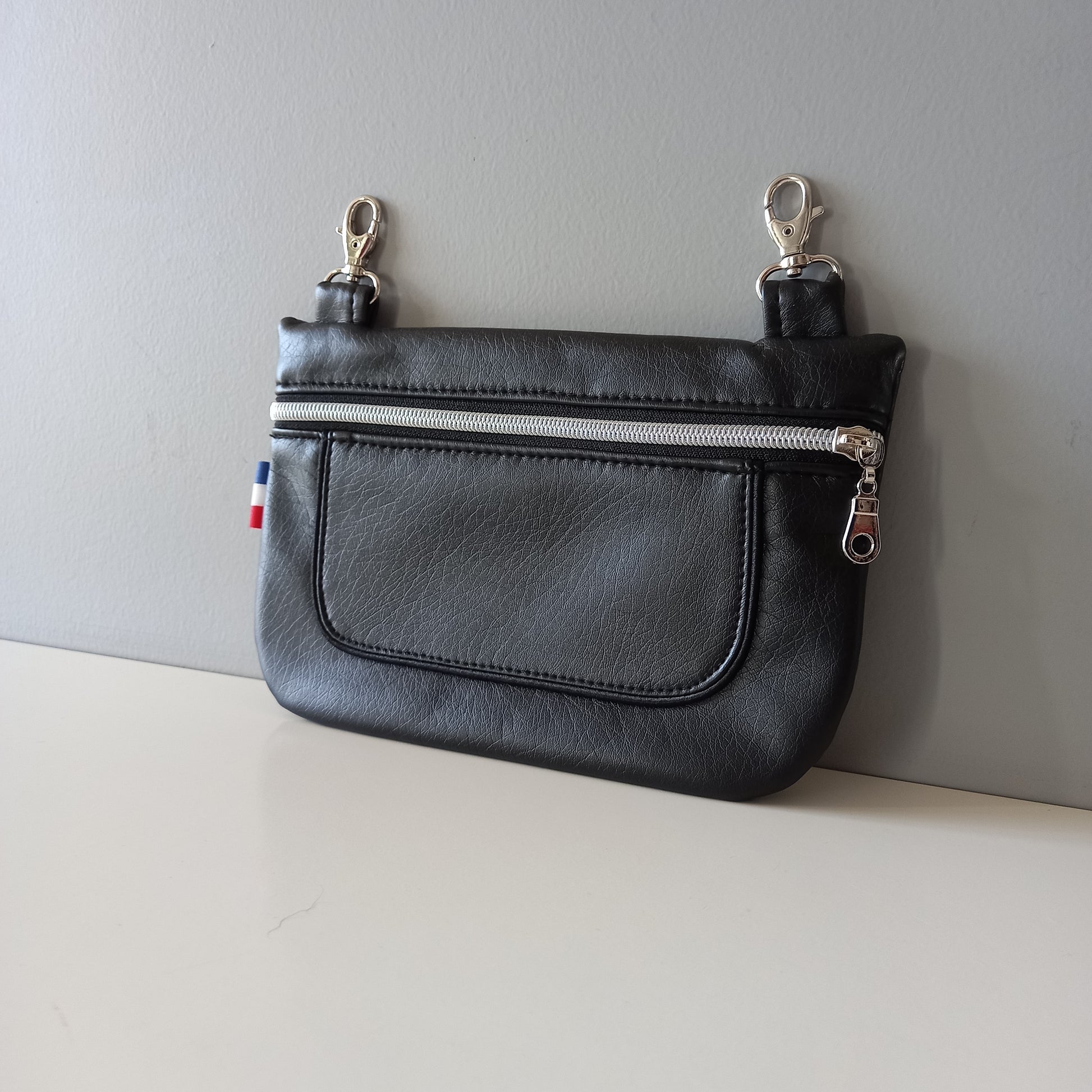 Hip bag en tissu enduit (simili), avec zip sur la face avant.