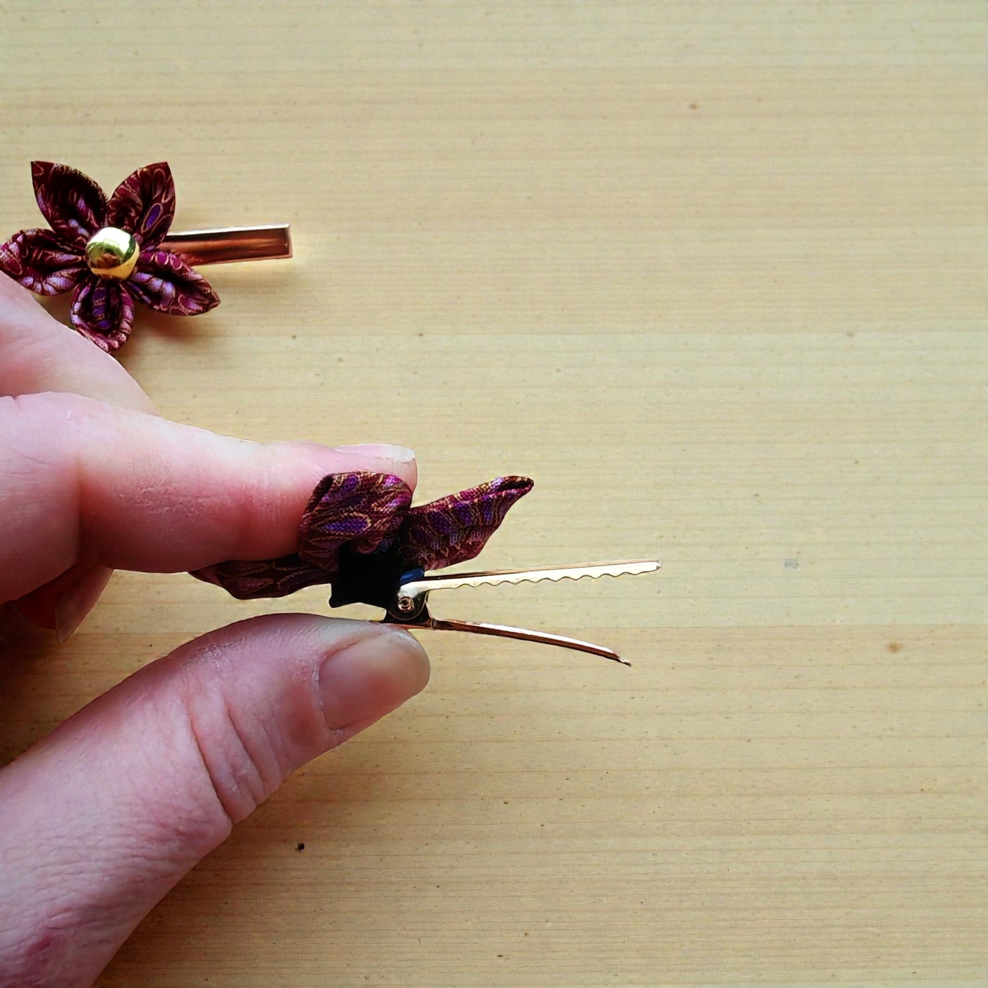 Lot de 2 barrettes à pince crocodile en acier inoxydable couleur or rose, solide, décorée d'une fleur en tissu japonais. Plus petites, idéales pour cheveux d'enfants.