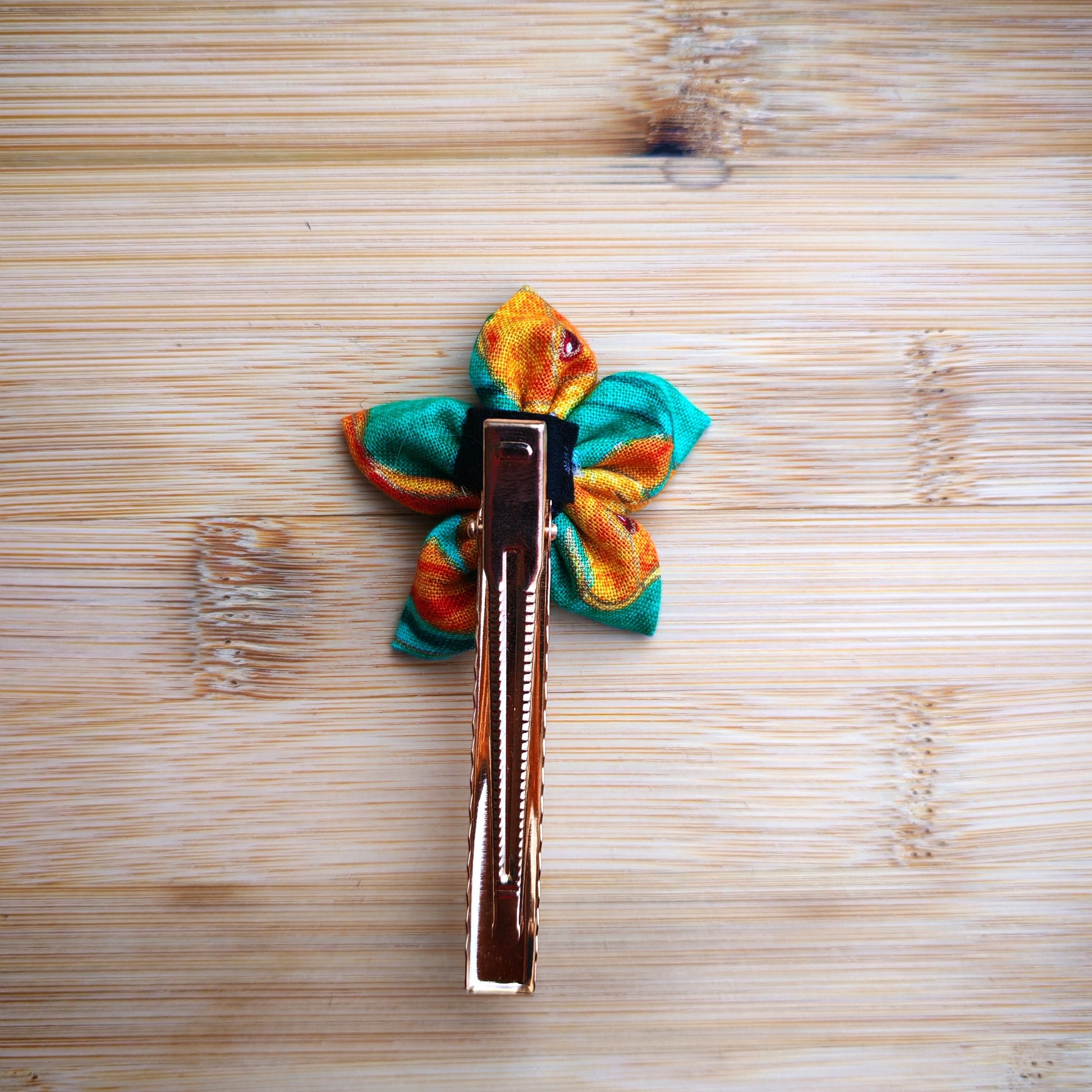 Barrette à pince crocodile en acier inoxydable couleur or rose, solide, décorée d'une fleur en tissu japonais.