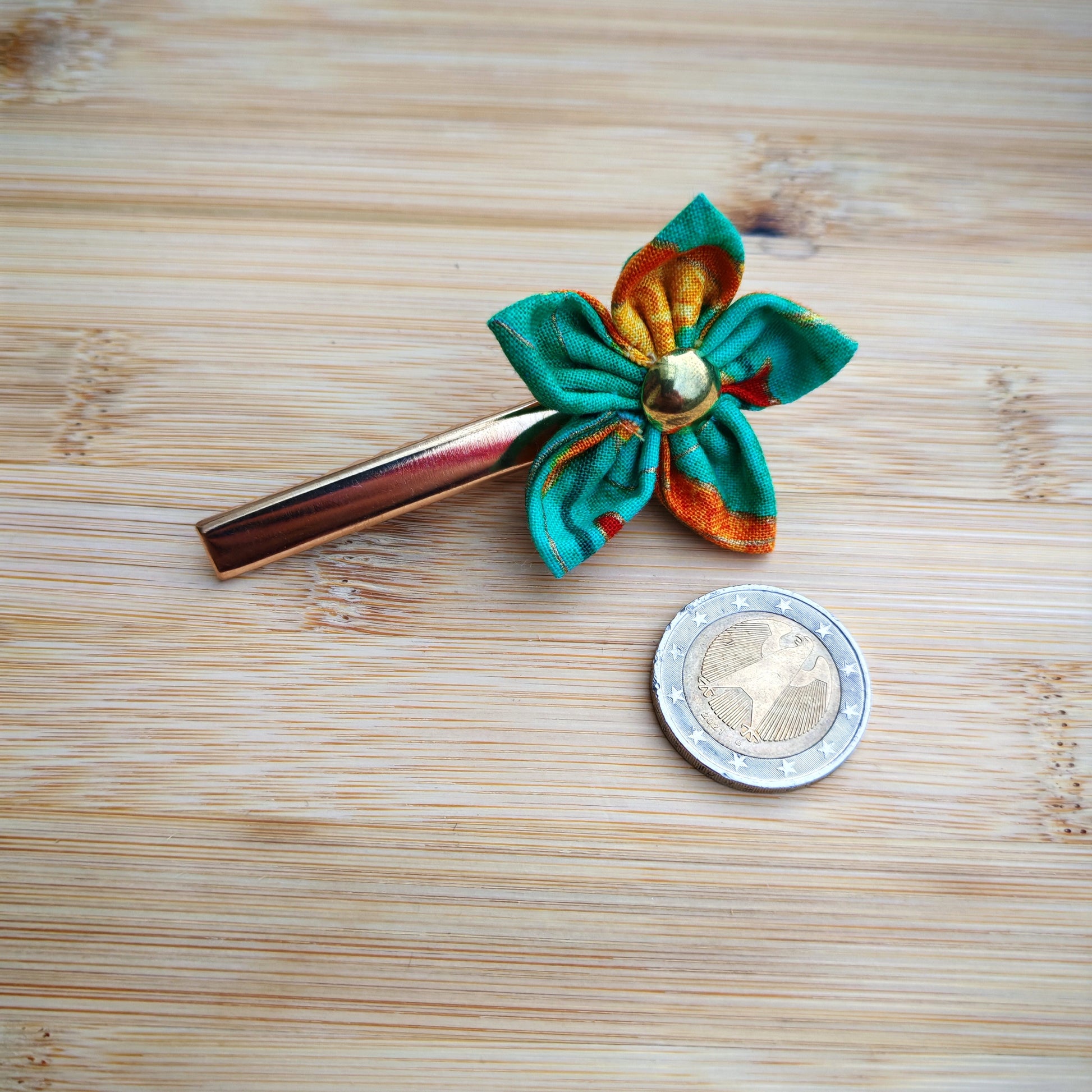 Longueur barrette 6,5cm. Diamètre fleur 5cm.